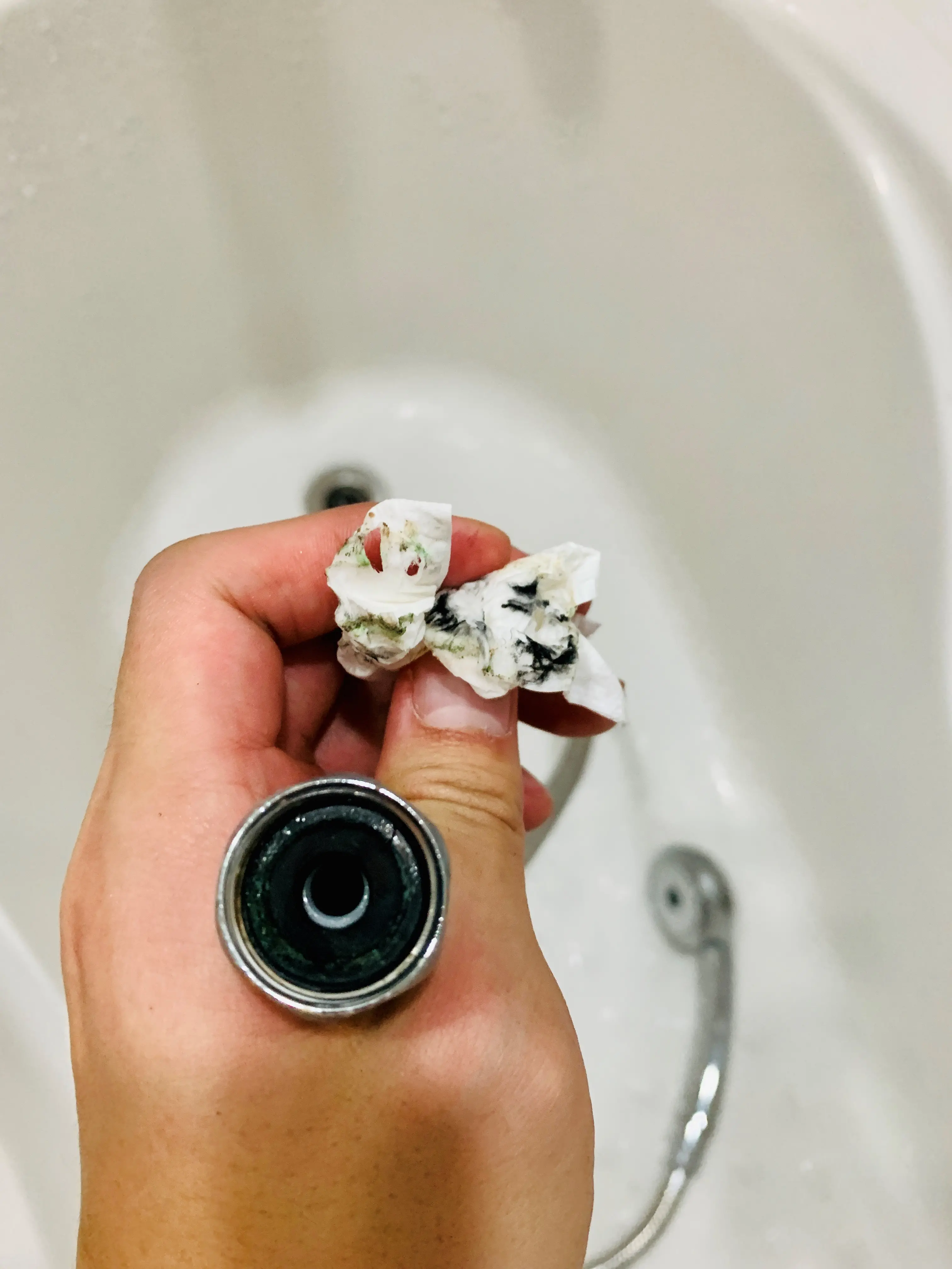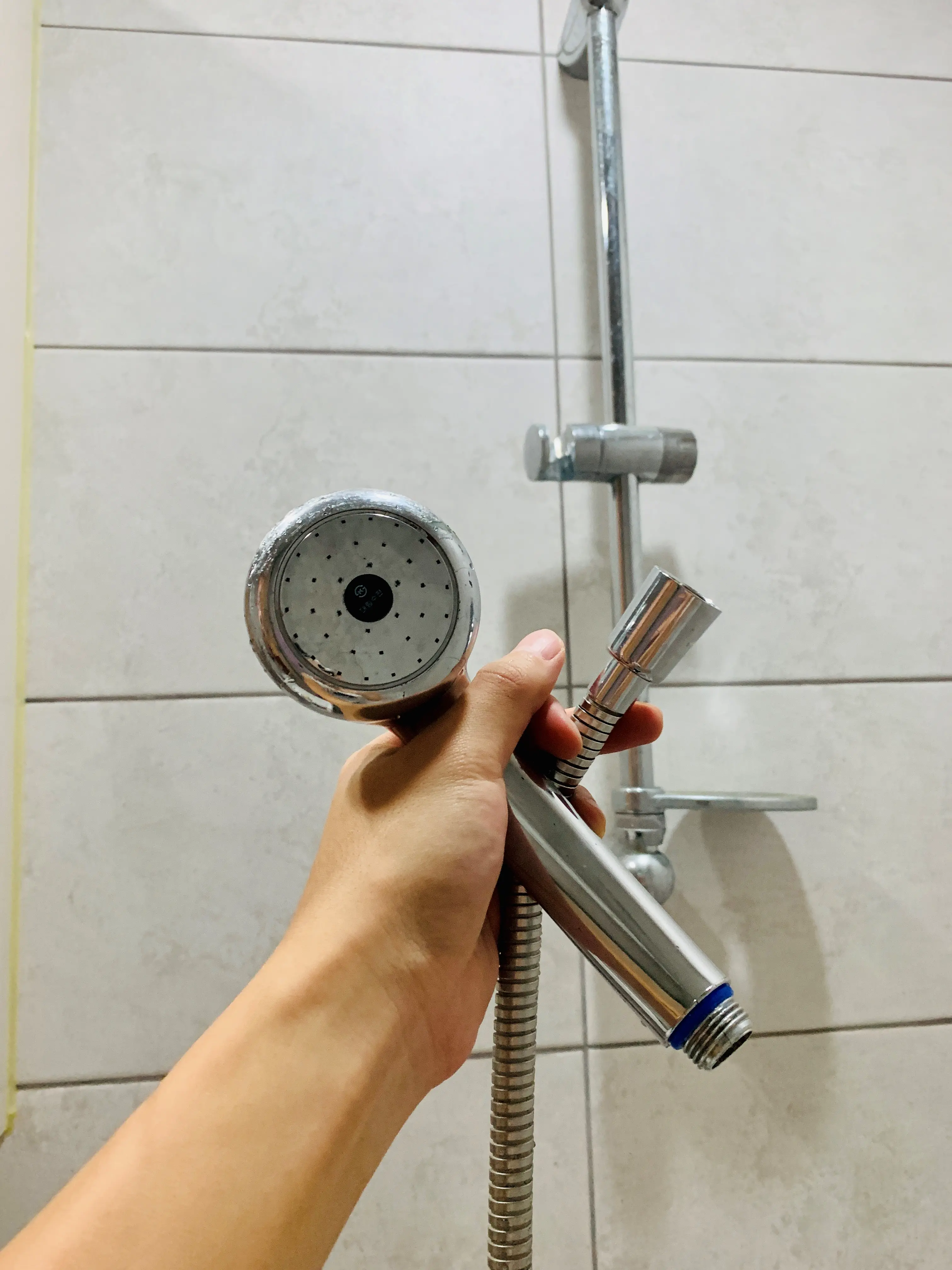 샤워헤드 경계 부분에는 각종 찌꺼기들이 이렇게 쌓여있는데, 저는 겸사겸사 청소도 해줬어요.