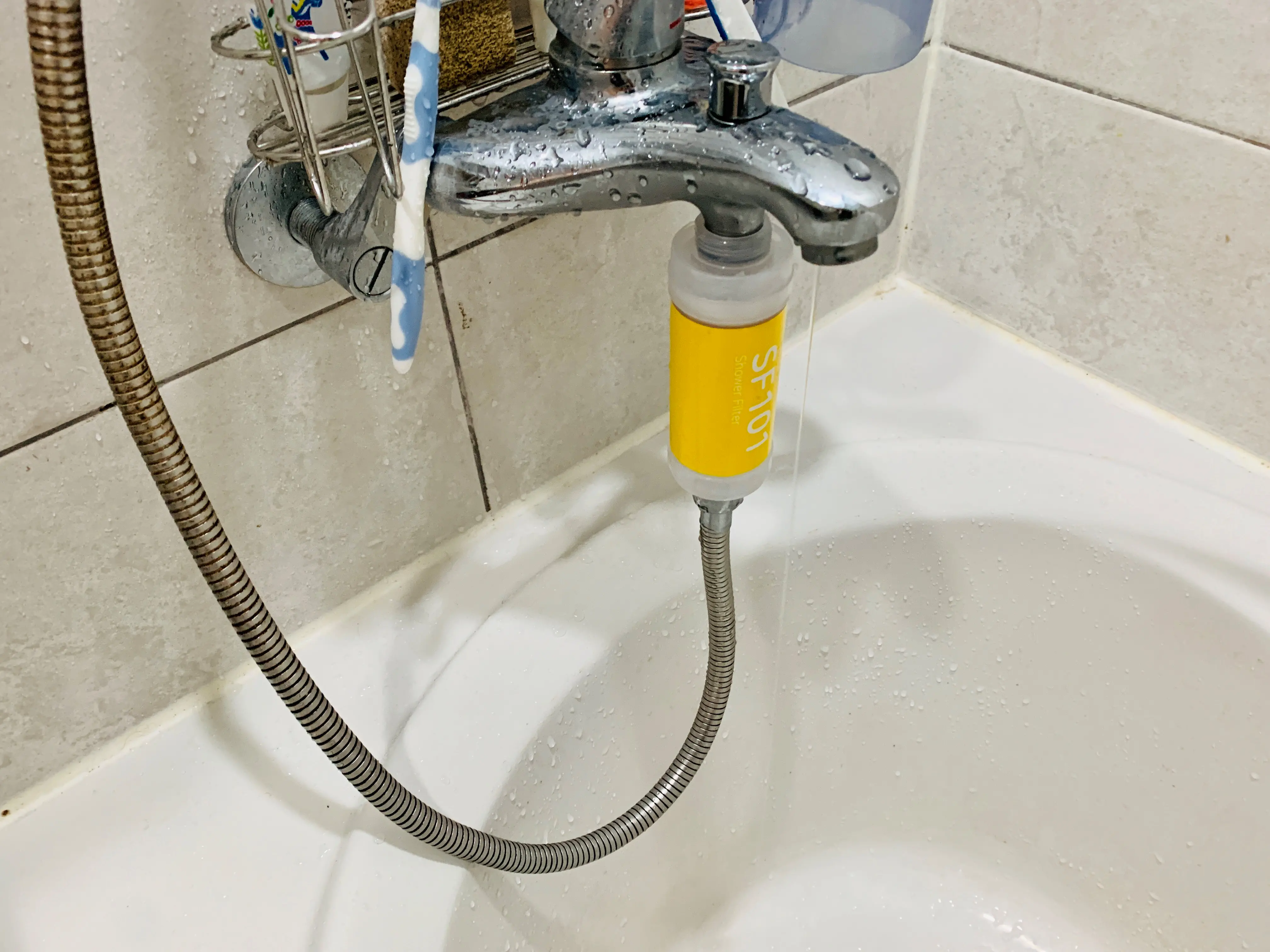 근데 결국 헤드에 부착 안 하고 수도꼭지 쪽에 부착...