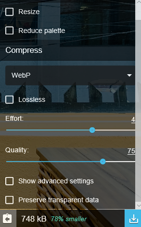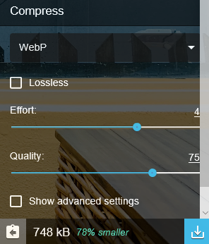 WebP는 748kB로 78% 압축된 것을 볼 수 있어요.