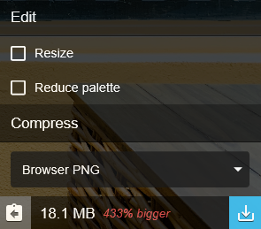 Browser PNG는 18.1MB로 433% 커진 것을 볼 수 있고요.