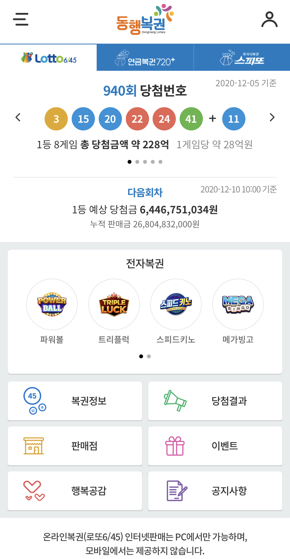 모바일이나 태블릿에서 로또를 구매하려고 하면 동행 복권 측에서 구매 접근이 안되게 막아두었어요.