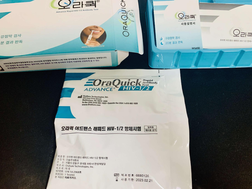 첫 번째는 HIV자가검사 키트인 오라퀵이고, 다른 하나는 전국 보건소에서 받을 수 있는 혈액검사입니다.