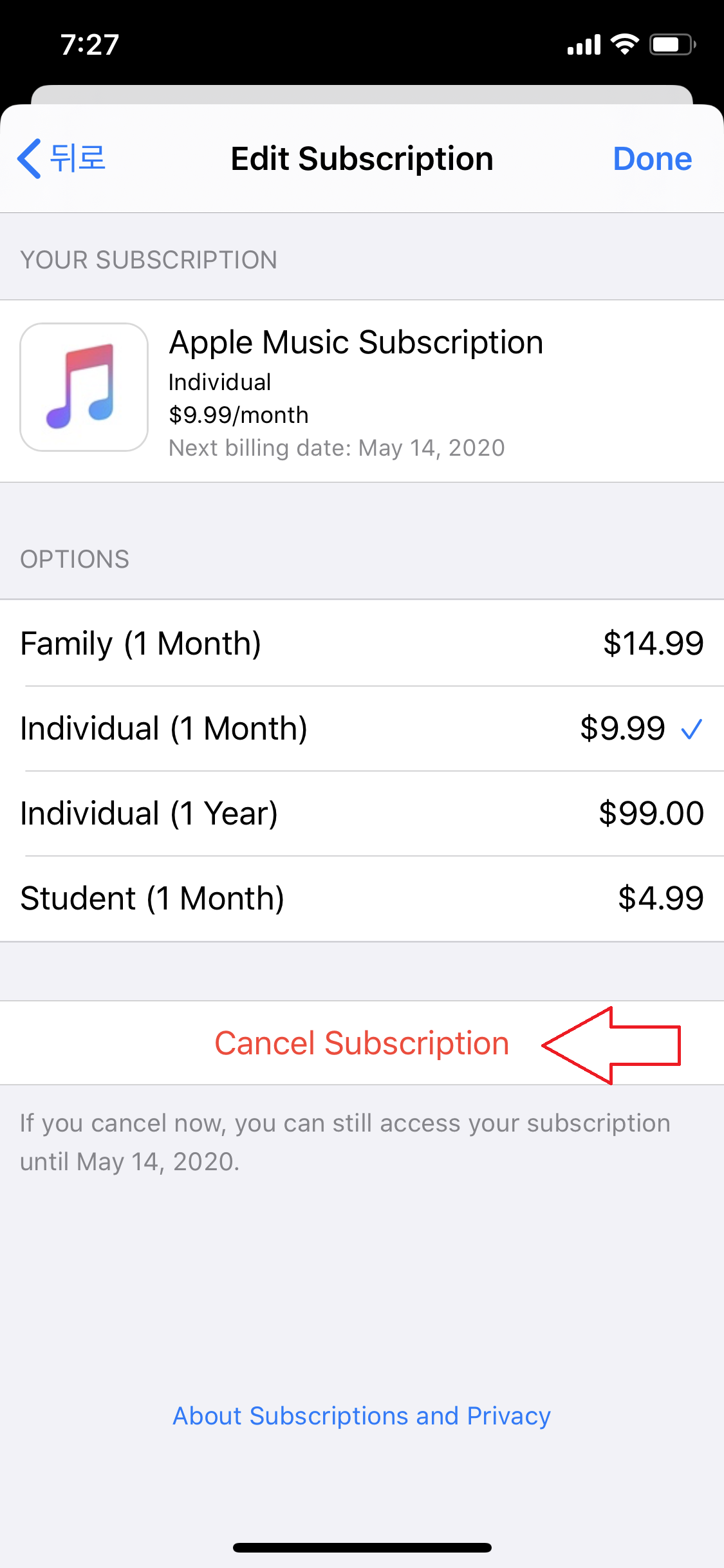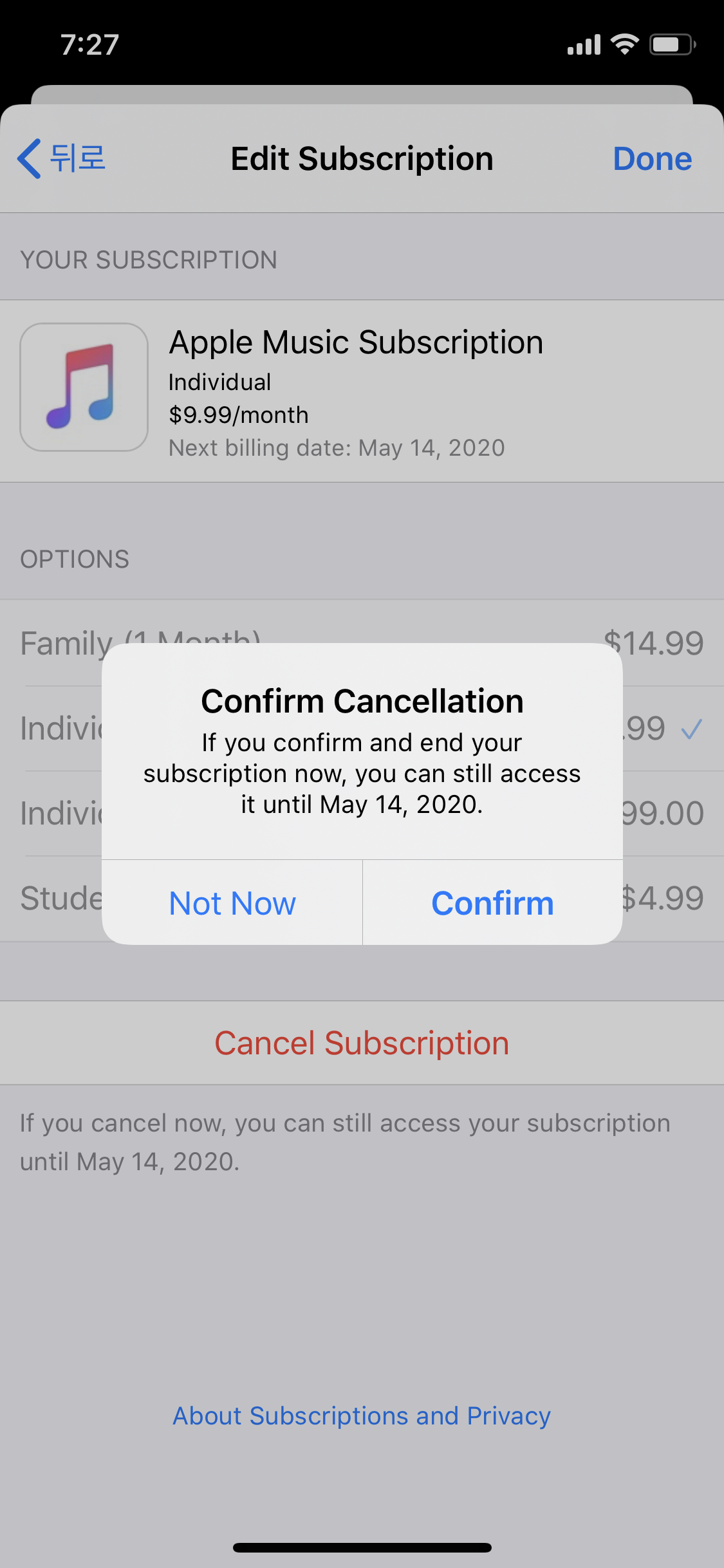 아이폰에서 애플 뮤직을 구독 해지하는 방법 2 (애플 뮤직)