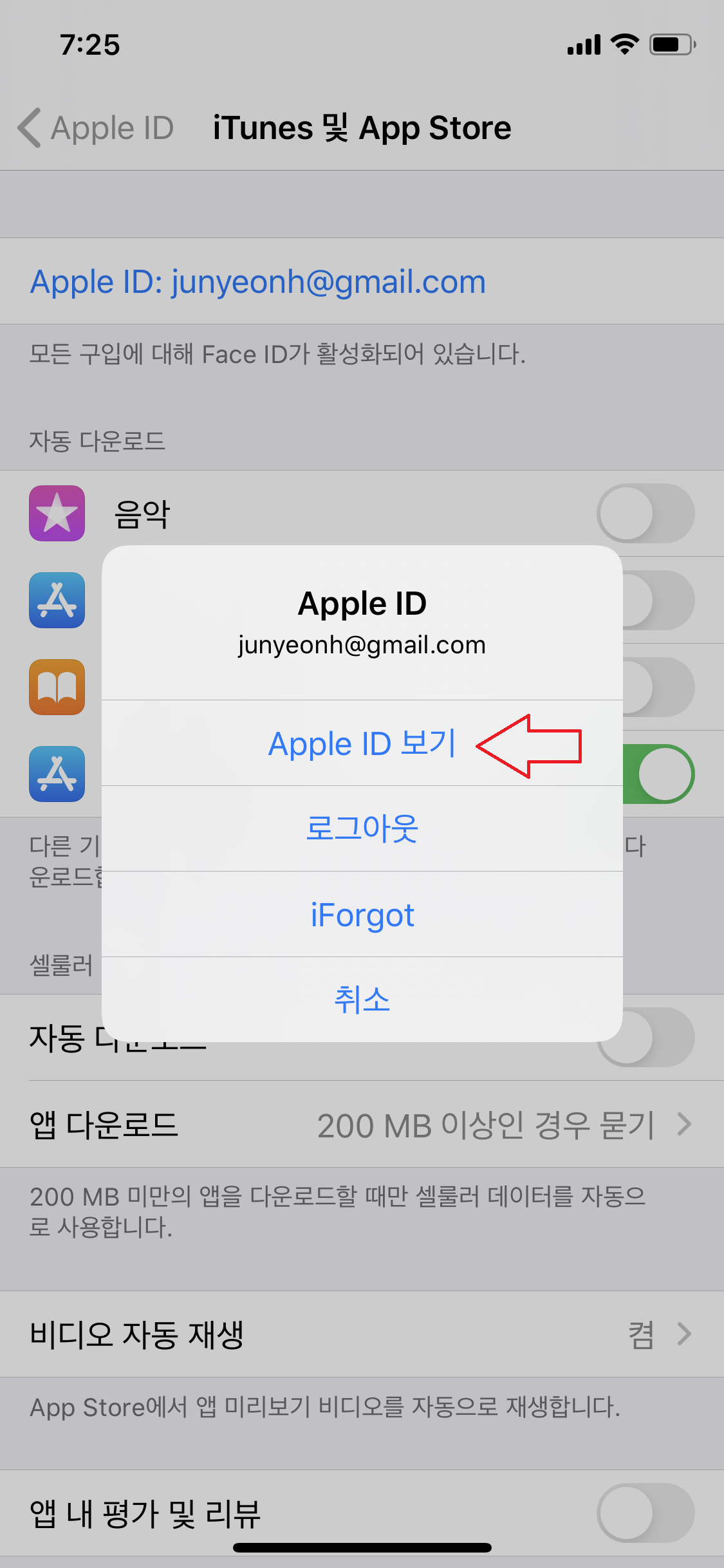 그리고 Apple ID 보기를 눌러주시고