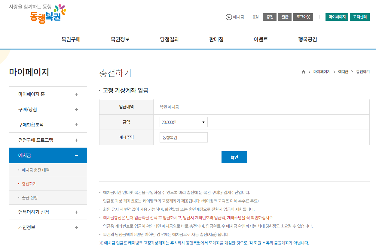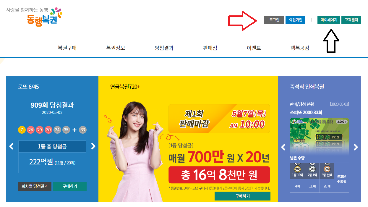 동행 복권 홈페이지에서 회원가입 및 로그인을 하시고