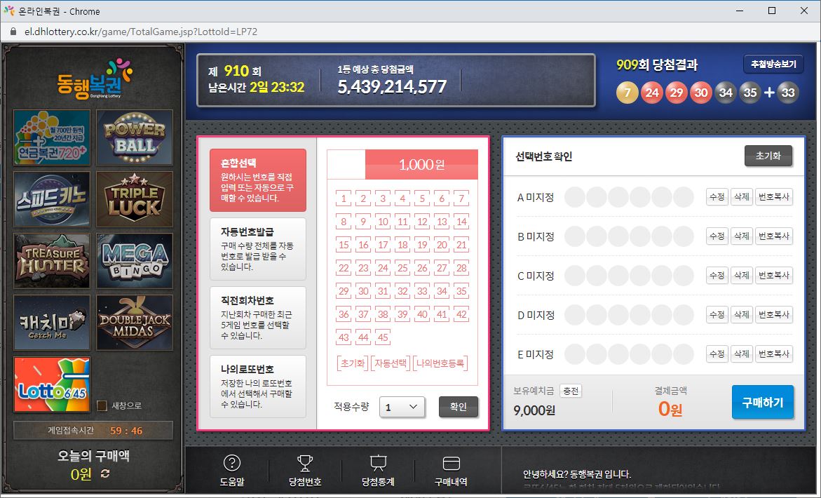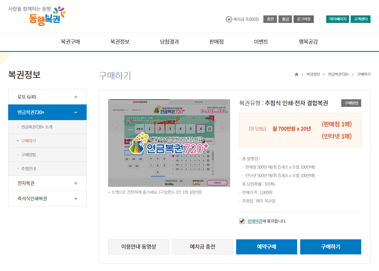 여기서 연금복권 720+와 로또 6/45 외의 복권류도 구매하실 수 있습니다.
