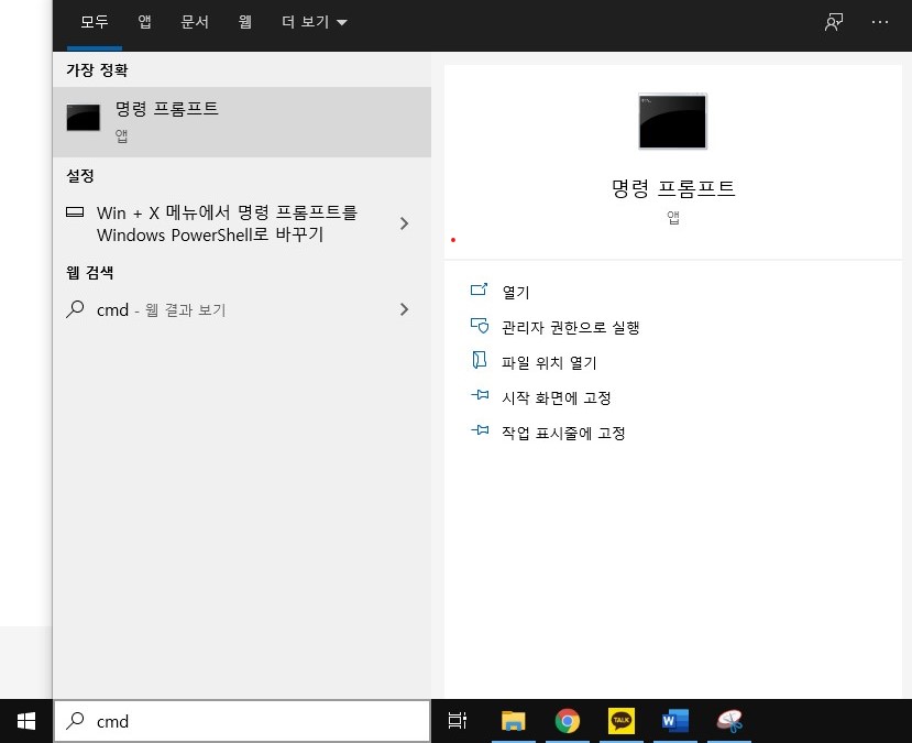 커맨드 프로그램을 실행 후 아래 명령어를 사용하셔야하는데요
