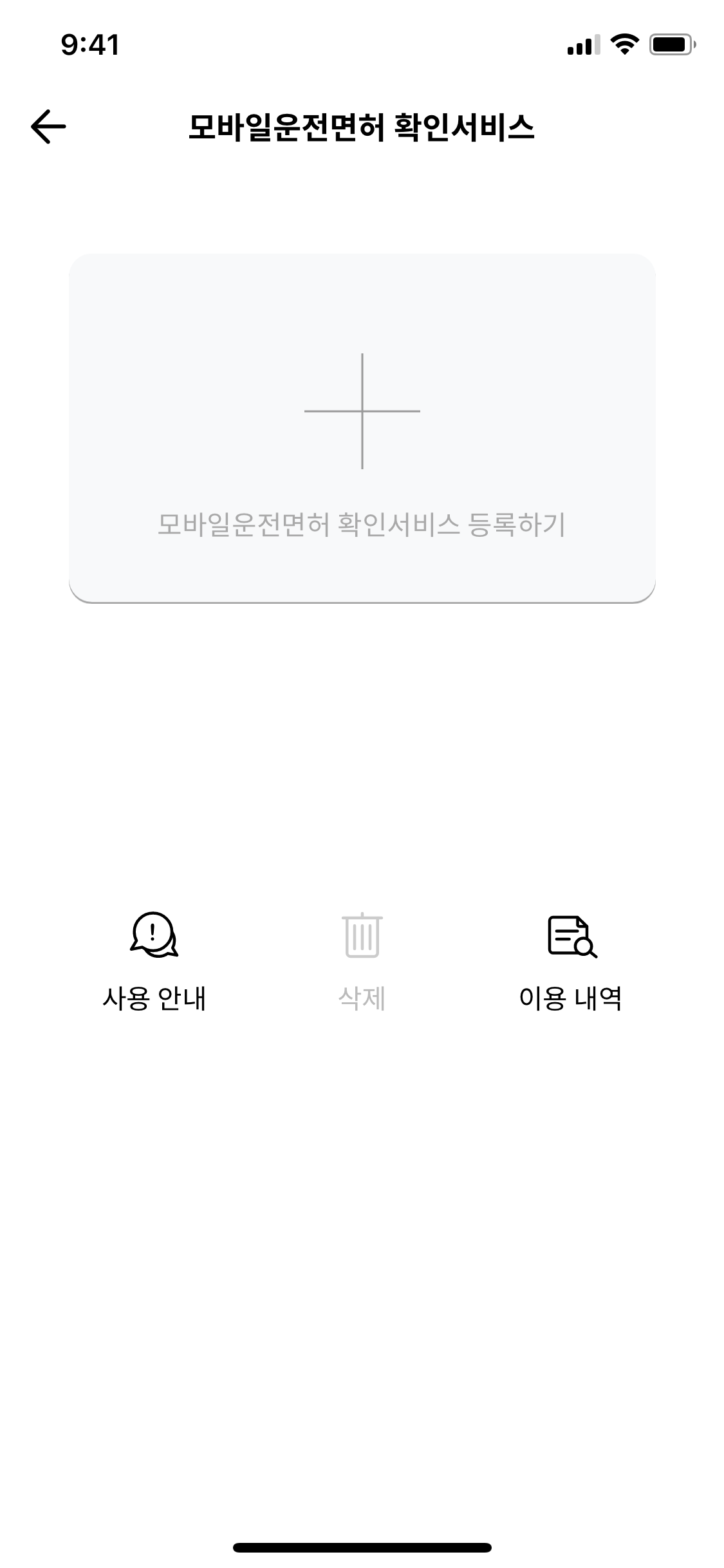 모바일 운전면허 확인 서비스 등록하기가 보이신다면 눌러주시고