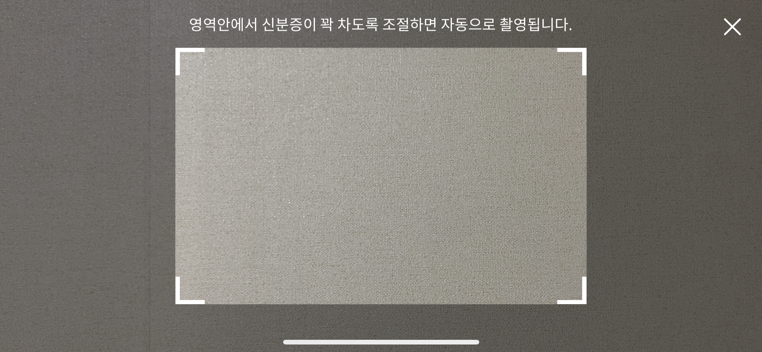 오른쪽 사진처럼 사각형 안쪽에 꽉 차도록 신분증 인식을 해주시면 됩니다.