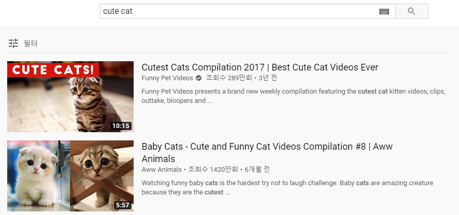 제가 다운로드할 영상은 귀여운 고양이 모음집 영상입니다.