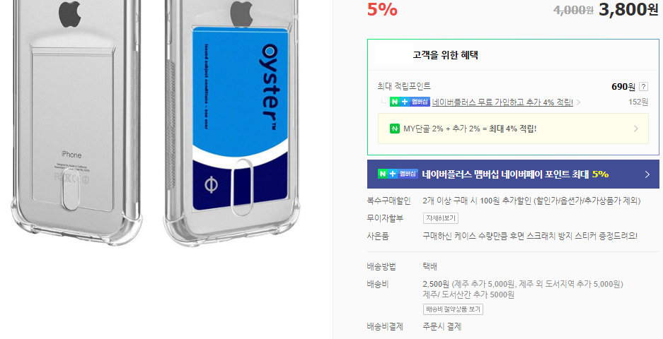아니면 제가 지금 사용하고 있는 투명 젤리 카드케이스를 예시로 들어볼게요.