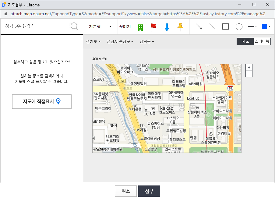 티스토리에서 지도 첨부를 하는 방법을 알아보겠습니다.