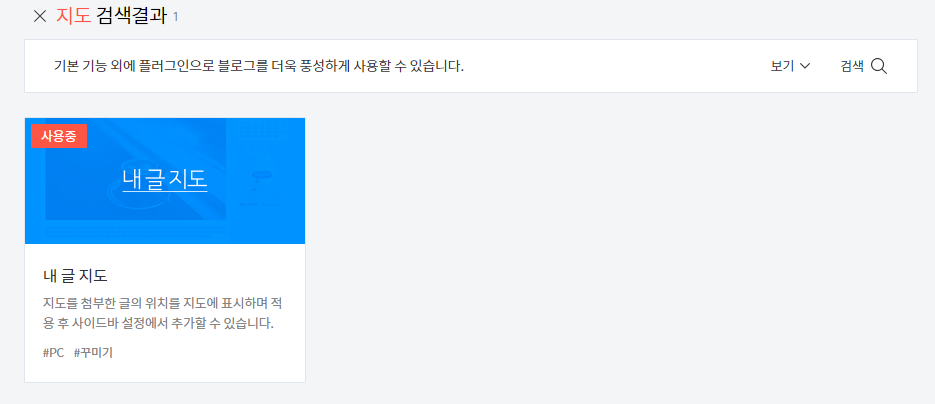 이렇게 티스토리의 플러그인에 들어가셔서 지도를 검색하시고